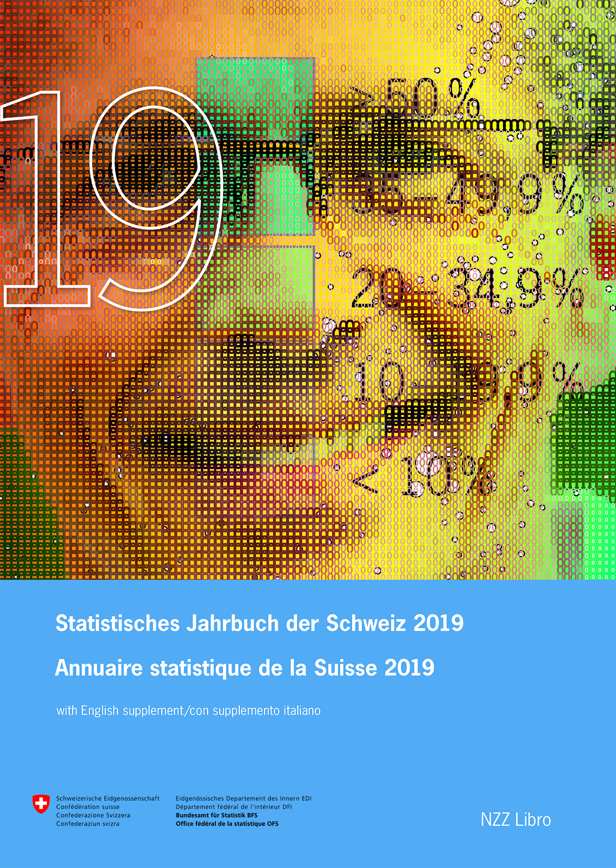 Das Statistische Jahrbuch der Schweiz erscheint 2019 im 126. Jahrgang. Die traditionsreiche Flaggschiff-Publikation des Bundesamts für Statistik bietet erneut einen aktuellen Überblick zu 21 Themen: von Bevölkerung über Arbeit und Löhne, Preise, Unternehmen und Beschäftigte, Wohnungs- und Bauwesen, Gesundheit bis zu Bildung und Kriminalität. Durchgehend in Deutsch und Französisch gehalten sowie mit je einem Übersichtskapitel in Englisch und in Italienisch, bietet es zusammenfassende und kommentierende Texte, erklärende Glossare und zahlreiche Grafiken. Ein Tabellenteil und ein Schlagwortregister ermöglichen zu jedem Thema Überblick und Vertiefung. Ein Spezialkapitel mit Karten zeigt Themen aus der Bevölkerungs-, Verkehrs- und Wohnbaustatistik auf Stufe der kleinsten Verwaltungseinheit der Schweiz: der Gemeinde.