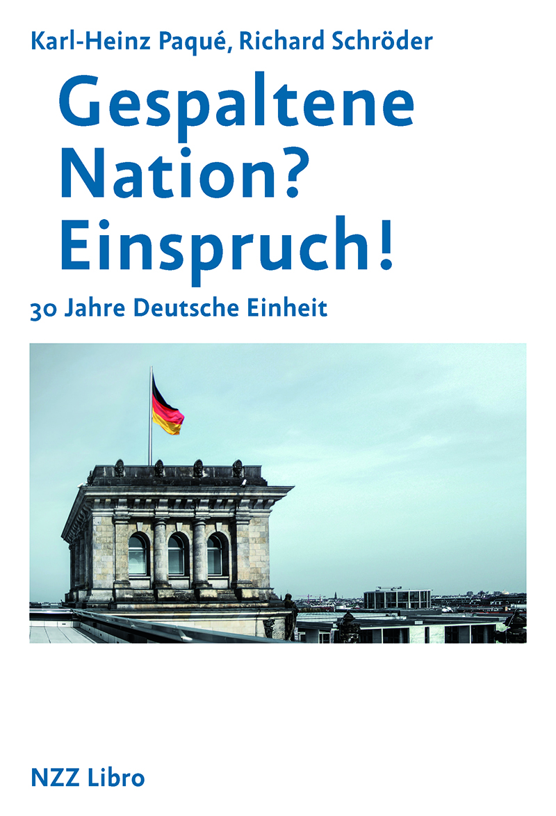 «Der wetdeutsche Ökonom Karl-Heinz Paqué und der ostdeutsche Philosoph und Theologe Richard Schröder haben eine Schrift zur deutschen Einheit vorgelegt, die mit vielen Missverständnissen und Fehlinterpretationen aufräumt.» Klaus Schroeder, ZdF 47/2'21